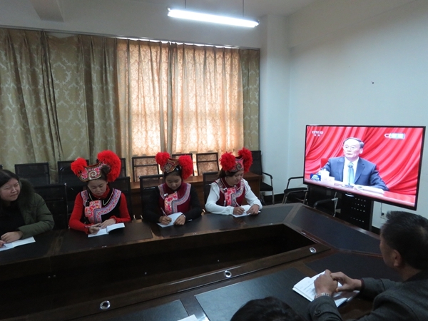 團結民族中學白族青年教師網(wǎng)絡觀看第七次全體會議視頻
