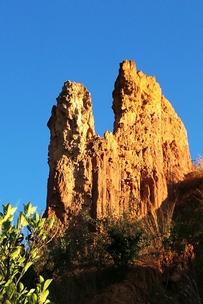 沿著崎嶇的棧道在土林中漫游,尤如走進大自然的藝術(shù)魔宮。遠看土林,高低錯落,縱橫相連,近看土林,形態(tài)各異,有的似筍,有的似箭,轉(zhuǎn)身回看則又變成人物頭像、飛禽走獸。在土林中來回穿梭,大自然的神奇讓你嘆為觀止,變幻莫測的形態(tài)任你想象,還有美麗的“望夫峰”傳說在你耳邊回蕩……