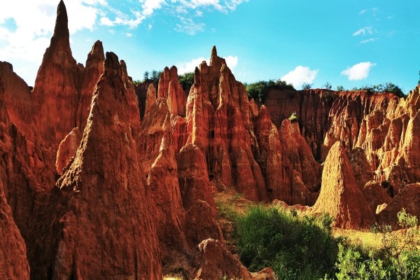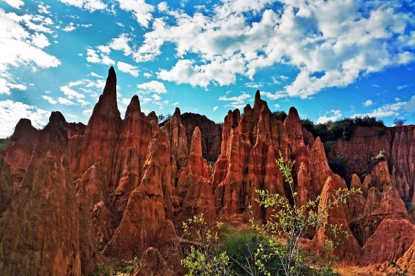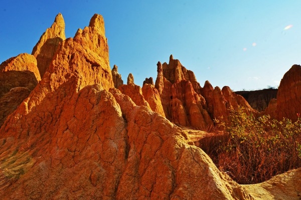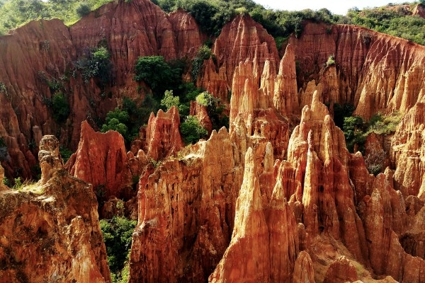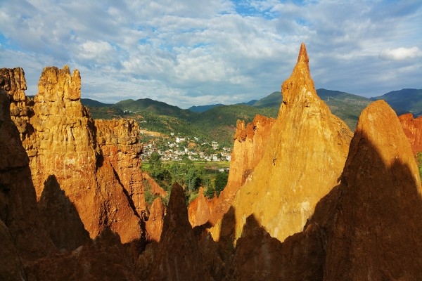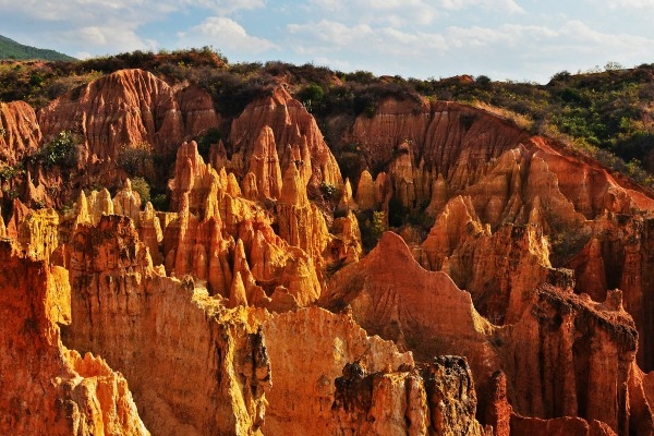 “石林是凝固的雕塑,而土林則是流動的油畫?!蹦蠞就亮治挥谀蠞究h城附近,離縣城約2公里。土林面積不是很大,但只要走進土林,你就能感受到大自然鬼斧神工的魅力。