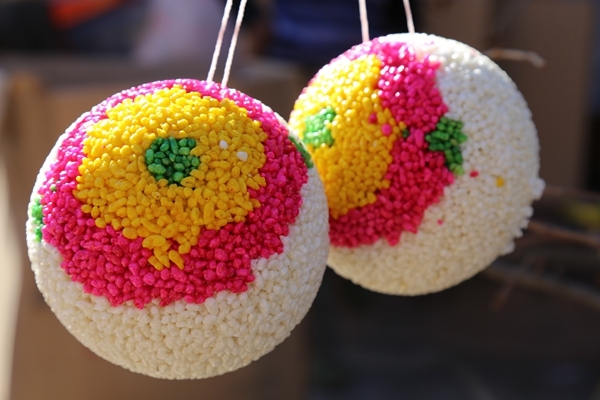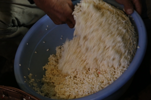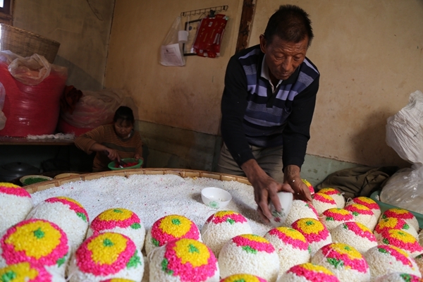 做飴糖工序復雜,方法也十分講究:先選上好的大麥,把它捂出芽后,曬干,磨成面,做“糖引子”。把上等的大米蒸熟后,放到大缸的清水中浸泡,放上“糖引子”。米飯浸泡10個小時后,把米飯的汁液壓出來,然后把汁液放在大鍋里煮,煮到汁液濃稠,這樣飴糖便做好了。 為了好看,還可以在米花上染上食色,做上些圖案,或做上幾個祝福的字,這樣更受大家的歡迎。