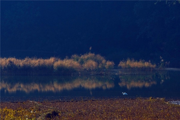 深秋,湖邊的蘆葦枯黃,孤獨的白鷺面對這蕭瑟的景象只能徒增憂傷
