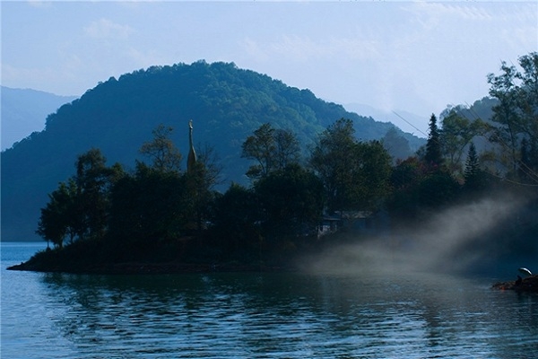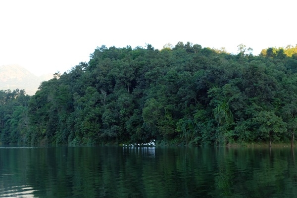 孔雀湖因史上就是綠孔雀棲息地和湖面酷似一只開屏的孔雀而得名