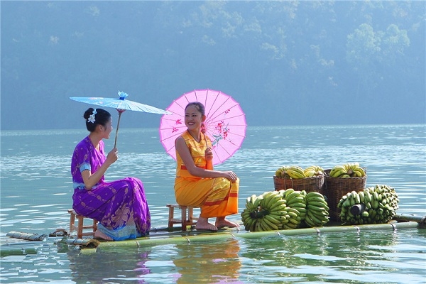 盛夏,碧波蕩漾的湖面上總有幾只竹筏,美麗的傣家小卜少(小姑娘)用它來運送自家種植的果實