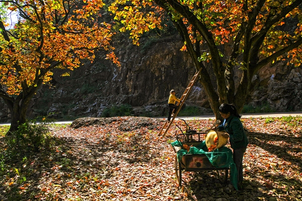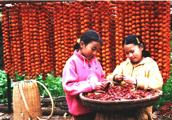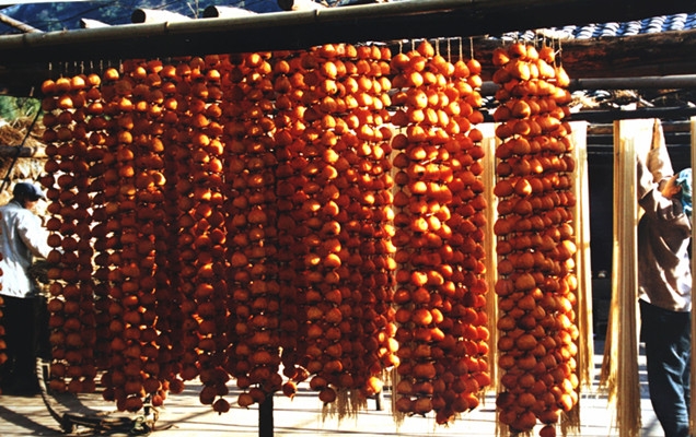 柿子在宣威俗稱“柿花”。在宣威市西澤鄉漫山遍野的柿樹,長著一嘟嚕、一疙瘩、一串串瑪瑙一樣的柿子,進入冬季,一個個黃橙橙的柿子掛滿枝頭,美不勝收。