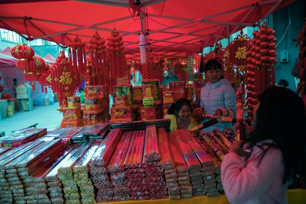 年貨街上,孩子們最愛的就是煙花(保山市騰沖市紀委 李維杰)