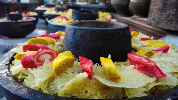 土鍋子,騰沖春節期間的一道佳肴。鍋子不使用金屬火鍋,只使用騰沖城郊滿邑村燒制的土陶火鍋,因而菜味鮮甜醇和(保山市騰沖市五合鄉紀委 解宏偉 閔加姣)