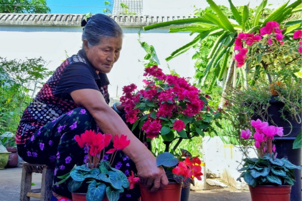 我的母親,是個平凡的景頗族退休婦女,閑暇時總不忘打理后院的那塊土地,因為那是她的秘密花園。