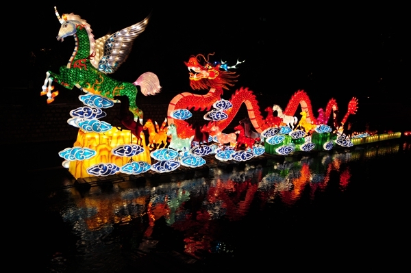 進(jìn)到公園內(nèi),到處都高高懸掛著大紅燈籠和紅彤彤的中國結(jié),整個園區(qū)被裝點(diǎn)得喜氣洋洋,洋溢著紅紅火火過大年的熱鬧景象。