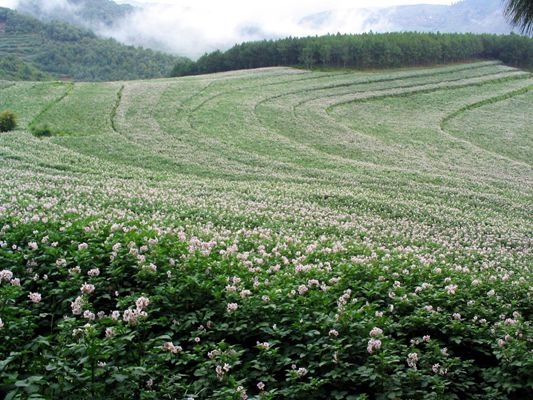 龍場鎮(zhèn)馬鈴薯種植基地的馬鈴薯花海正在迎接客人