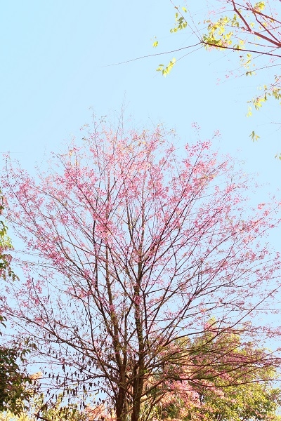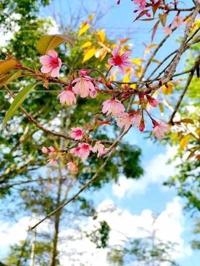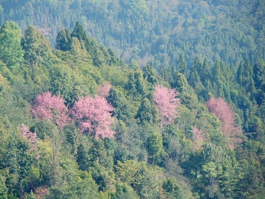 二月,是王子樹鄉最美的季節,因為,漫山遍野的櫻花開了。遠遠望去,山間一簇簇粉色,給單調的翠綠增添了幾許靈動。在冬與春交接之際,滿山蔥郁,只有這櫻花燦爛綻放。她沒有牡丹的雍容華貴,也不像水仙般惹人憐愛,她堅韌、剛強,迎著陽光傲然盛開。