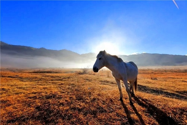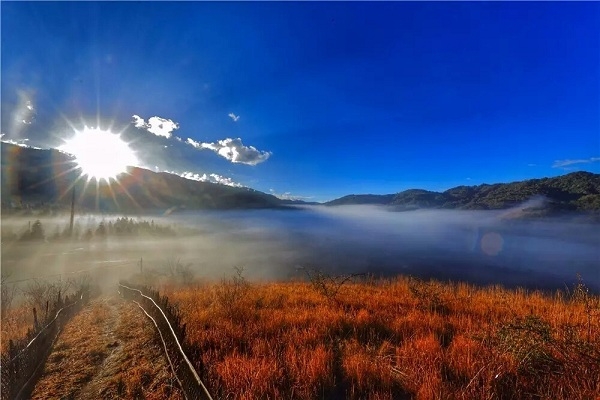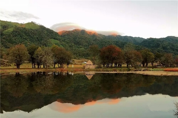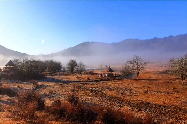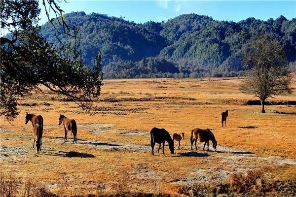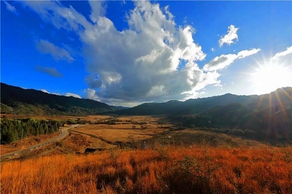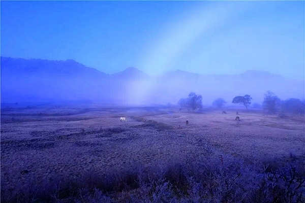 詩蜜瓦底——黃草壩位于盈江縣城以北43公里,壩中多草甸,牛馬成群,一條小河從中穿過,兩岸多百年奇樹,地勢緩和起伏,形成了美麗奇特的高山草原風(fēng)光。
