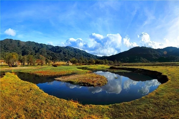這里白云朵朵,朗朗晴空;這里草地廣闊,牛羊肥壯;這里黃草戚戚、參天古樹;小伙伴們約起來,讓我們一起到這片凈土,漫步草地,放空自己,盡享眼前美景!(盈江縣紀(jì)委 朗培相 鄭山河 )