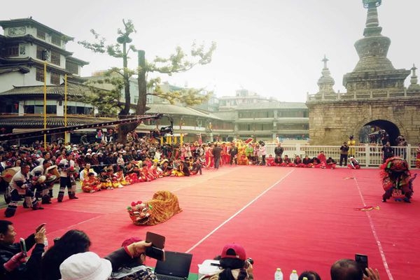 金龍狂舞,雄獅展威;彩綢紛飛,鑼鼓喧天。2月10日上午,2017年“龍騰獅躍鬧元宵”全國龍獅大聯動昆明舞龍舞獅展演活動在官渡古鎮南門廣場盛大舉辦。