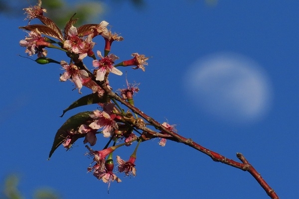 春回大地,曉月東升,春風凈素月。春暖花開,月照枝頭,花簇月近人。一年之計在于春,珍惜春光,莫負期望,擼起袖子加油干!