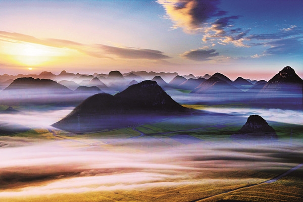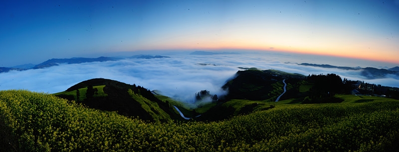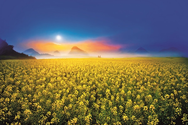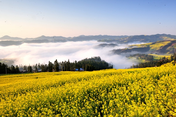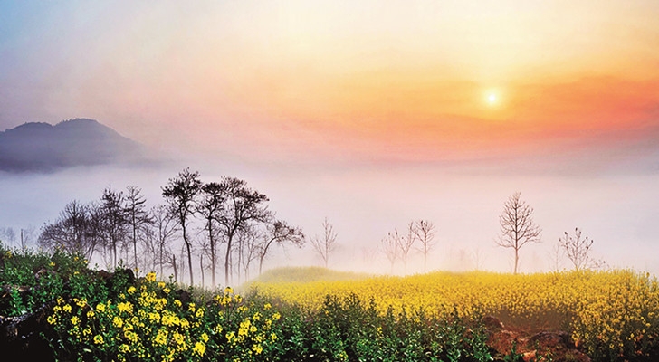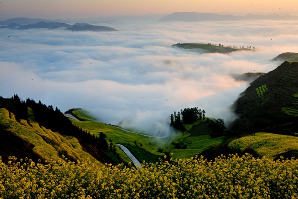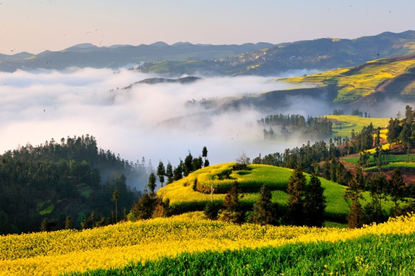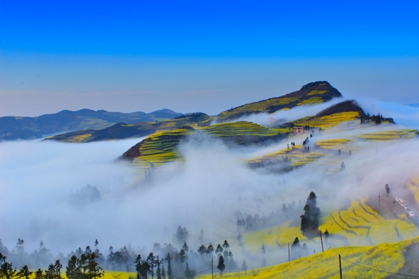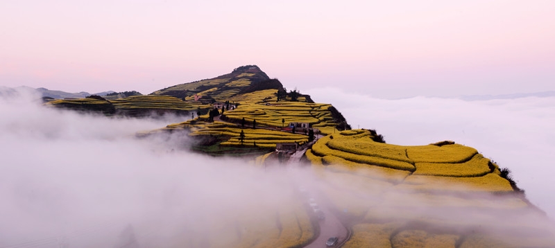 當下,時值菜花盛開季節,恰逢天氣由陰轉晴,曲靖市羅平縣時時處處春霧彌漫,云海縹緲,美輪美奐,景色如畫。