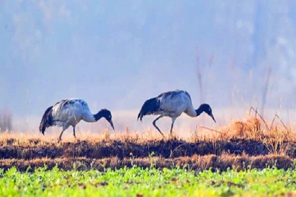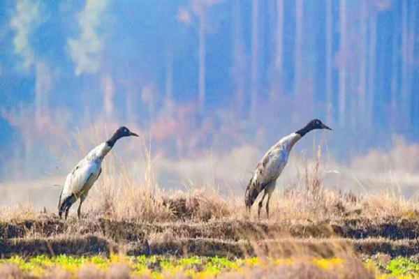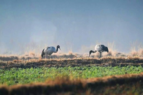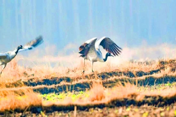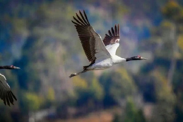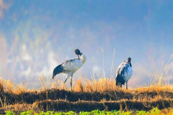 黑頸鶴棲息于海拔2500-5000米高原的沼澤地、湖泊及河灘地帶,是世界上唯一生長、繁殖在高原的鶴,也是飛過了珠穆朗瑪峰的鳥類,飛行高度可達10000米。( 盈江縣紀委 何海燕 何斌 寸智勇 )