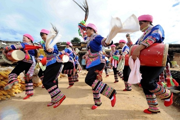 彝家姑娘跳起美麗的舞蹈《歡樂火把節》