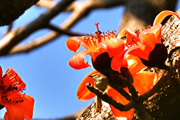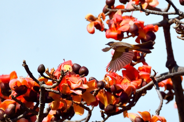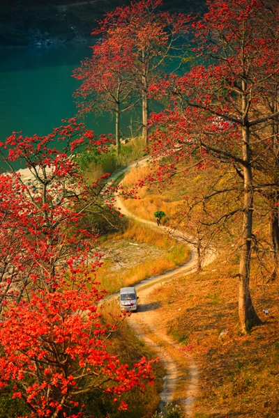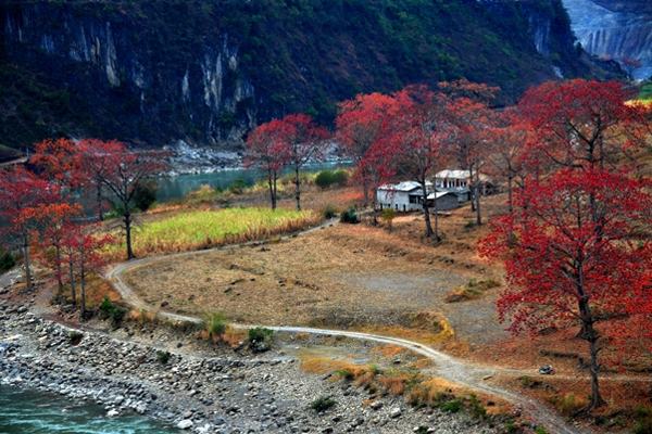 陽(yáng)春三月,草長(zhǎng)鶯飛,怒江峽谷兩岸的木棉花競(jìng)相開(kāi)放,把天際都染得通紅,“醉”了怒江、“醉”了峽谷、“醉”了看花人的心。