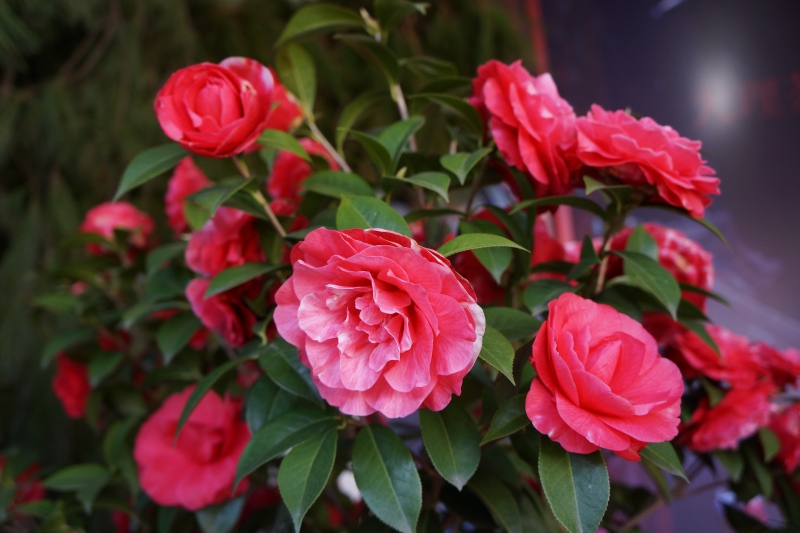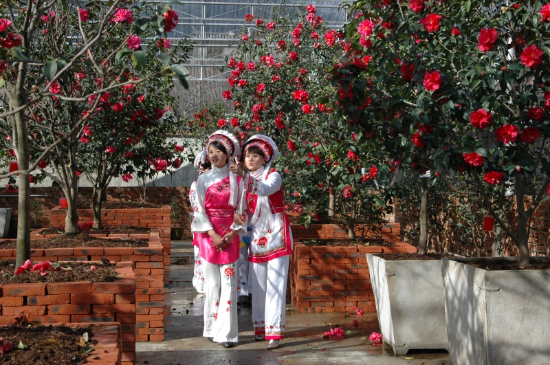 人面茶花相映紅