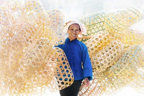 挑著自己花了無數個日夜才編好的雞籠到集市上出售,臉上滿滿的都是幸福。