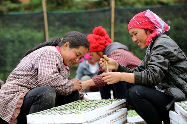 一盤接著一盤的忙著培育烤煙苗,小小的秧苗承載著大大的希望。