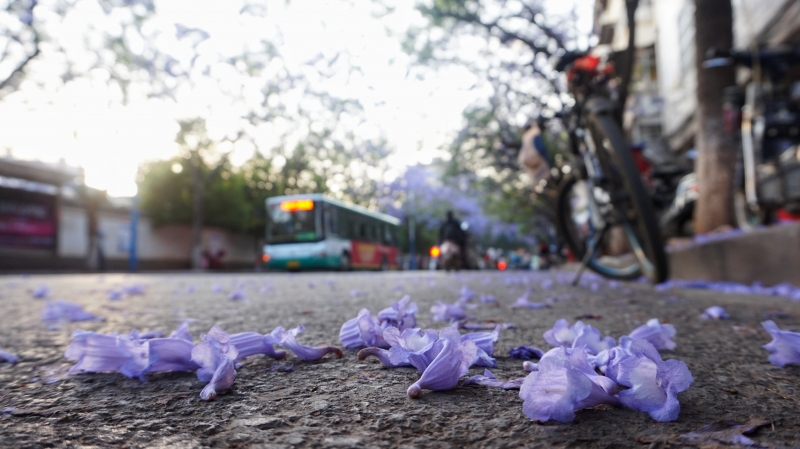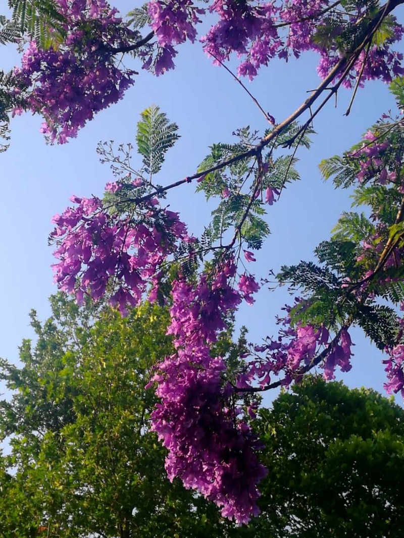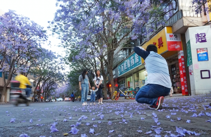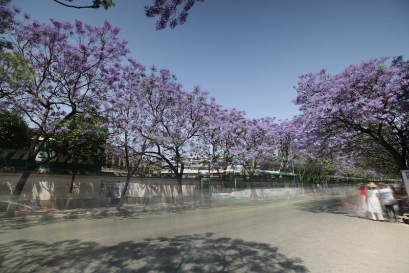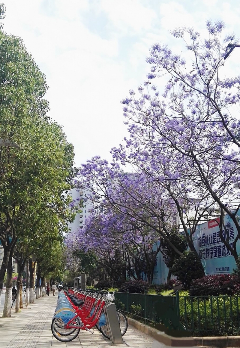 五月,藍花楹又靜悄悄地覆蓋城市的某些角落,給春城裝扮上紫藍色的盛裝。她在昆明落戶近30年的時間里,每年總是如約綻放,當一場藍花雨落下,清悠、寧靜、深遠,甚至帶一點點清麗脫俗。行走于花海之下,樹影婆娑,花枝搖曳,令人心曠神怡。