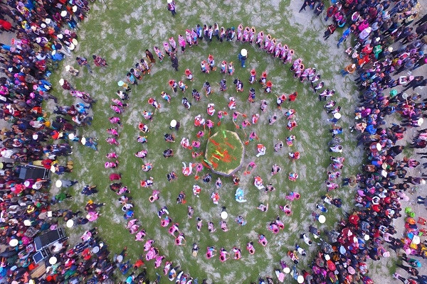 天峰山位于祥云縣普淜鎮,因其神奇俊秀的風姿和底蘊厚重的文化,素有“天自幾時有起,峰從何處飛來”的美譽。“天峰山歌會”歷史悠久,風格獨特,每年農歷二月十五,數以萬計的各族男女老幼皆身著節日盛裝齊聚天峰山,參加一年一度的歌會,選拔 “歌王”“歌娘”。歌會上,各族群眾在松樹映蔭的打歌場上踏歌起舞;青年男女在天峰山“情人林”對情歌,尋找人生伴侶;中年男女在天峰山對歌場上用歌聲相互傾訴人生的喜怒哀樂。