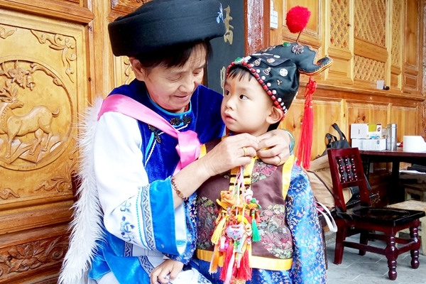 端午節(jié),白語稱“五旺五”。劍川縣白族民間有端午節(jié)給小孩掛布扎的習(xí)俗。這一天,家里的老人就用色彩鮮艷的各色絲綢把艾葉、青蒿、紫蘇等香料包裹起來,縫制猴、虎、兔、繡球等布扎吉祥飾物,將一串串布扎掛在兒孫的胸前,為兒孫祈福納祥。
