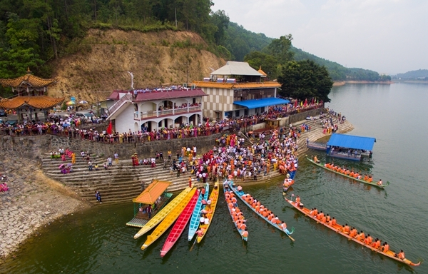 自古以來,端午節(jié)有劃龍舟的習(xí)俗。每年端午時(shí)節(jié),芒市孔雀湖畔人山人海,好一派“揮漿逐浪賽龍舟,孔雀湖上競追逐”的節(jié)日景象。