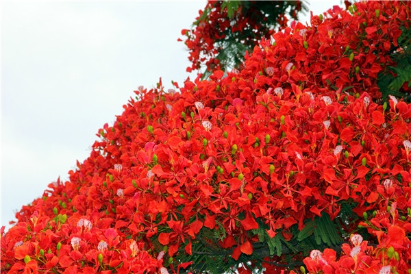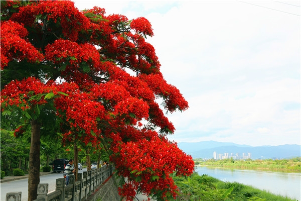 5月的瑞麗是火紅的季節(jié)。當(dāng)熱辣的陽光曬暖了微風(fēng),瑞麗江畔的鳳凰花也如期盛開,點點火紅一旦染上綠樹枝頭,便再也停不下來,轟轟烈烈地詮釋著生命的燦爛。