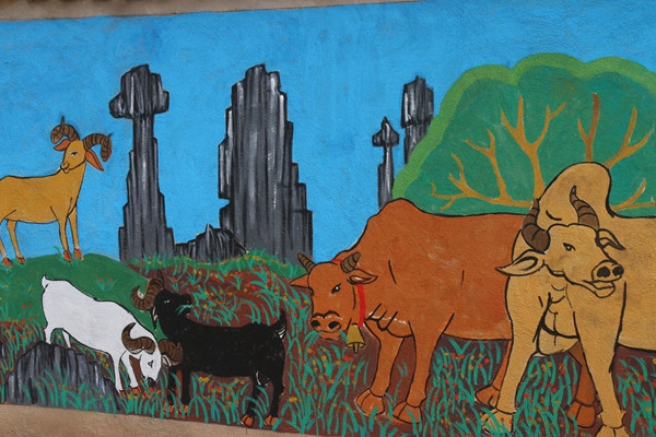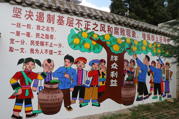 石林的農民畫歷史悠久,最早可追溯到東漢,作者多為農民,題材取自勞作和撒尼民俗,創作手法獨特,色彩艷麗,具有濃厚的鄉土氣息和撒尼風情,成為中國特有的美術畫派。1988年,石林縣被被國家文化部命名為“中國現代民間繪畫之鄉”。近年來,石林的農民畫家們把農村的墻壁作為創作平臺,用一幅幅帖近生活、形象逼真的農民畫傳遞廉潔理念和文明新風,為群眾喜聞樂見,起到了潤物無聲的教育作用。