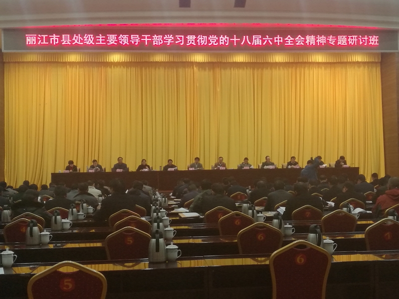 3月12日,麗江市舉辦縣處級主要領導干部學習貫徹黨的十八屆六中全會精神專題研討班。30余名廳級領導和100余名縣區黨政主要領導、市直部門、企事業單位、省屬駐麗單位主要負責人參加了學習研討。