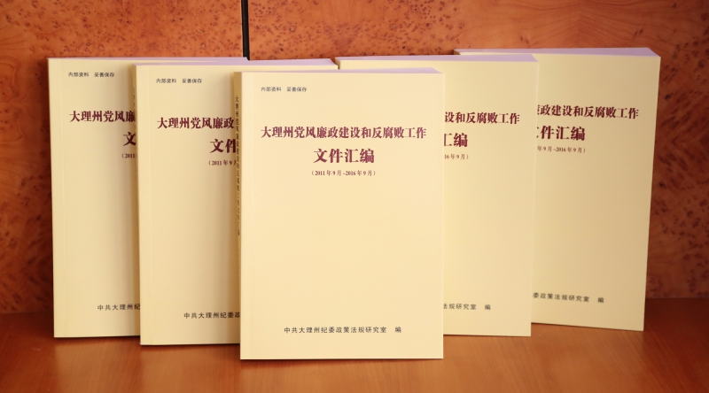 據悉,為全面總結近五年來全州黨風廉政建設和反腐敗工作經驗,展示反腐倡廉制度建設成果,為全州黨風廉政建設和反腐敗工作提供指導和參考,由州紀委政策法規研究室牽頭編纂了這本《大理州黨風廉政建設和反腐敗工作文件匯編(2011.09—2016.09)》。編纂工作在州紀委常委會的領導下,實行責任分工制、內容審定制、時限倒逼制,州紀委政策法規研究室、辦公室、黨風政風監督室、案件監督管理室等部室按照職責分工,分別負責相關資料的收集、組稿、編制、初審、校核、印制、發放工作,分五個時段完成了各階段的工作任務。目前,《文件匯編》750冊已發放到州級黨政機關和州、縣、鄉紀檢監察干部手中。
