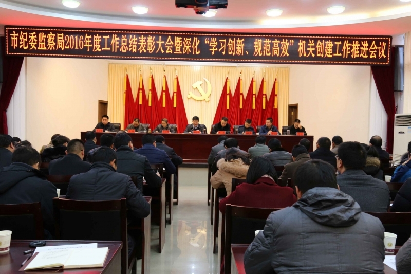 近日,昭通市紀委監察局機關召開2016年度工作總結表彰暨深化“學習創新、規范高效”機關創建工作推進會議。會議回顧總結2016年的工作績,表彰先進,對深化“學習創新、規范高效”機關創建工作進行再動員、再部署。