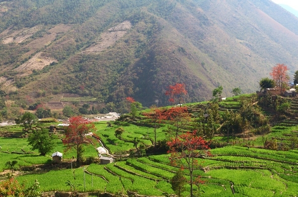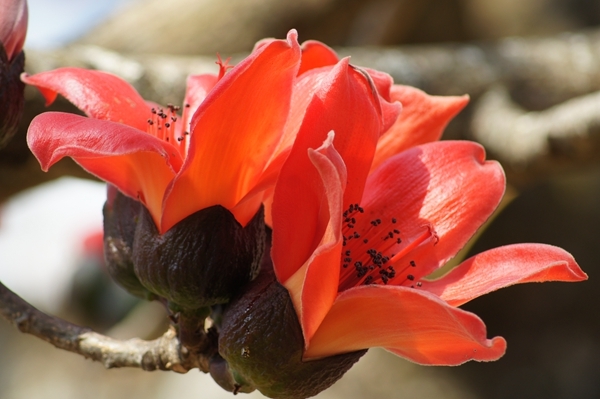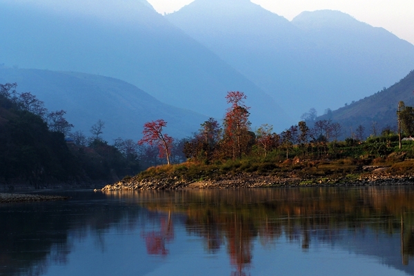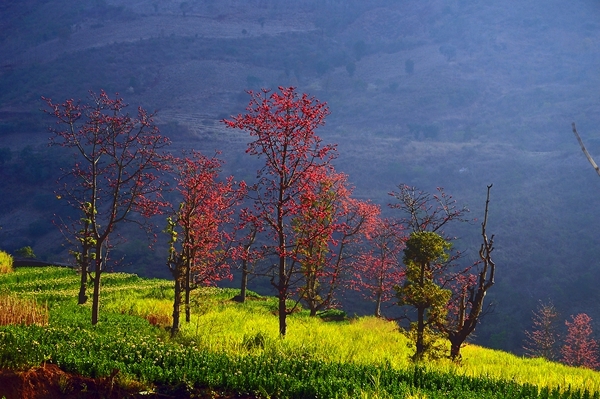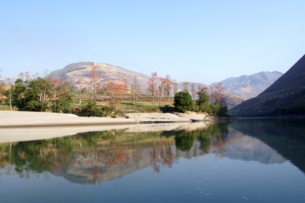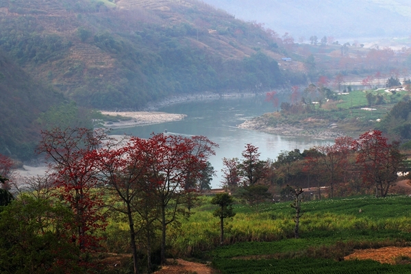 三月的怒江沿岸,一朵朵一簇簇綻放的紅木棉,像一團團熊熊的火在燃燒,或傲然獨立于山脊,或三兩相依于路旁,或好似邀約地矗立于江畔,點綴出一種別樣的美。
