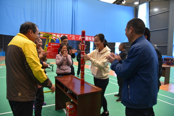 女紀檢干部們與男同胞們齊心協力,營造“快樂工作,幸福生活”的節日氛圍。