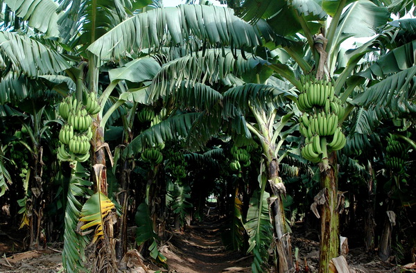 香蕉樹上掛滿一掛掛香蕉,綠油油的,還沒有成熟,就樂的笑彎了腰,像個月亮,這些香蕉娃娃急切地扒開綠色的葉子向外張望,向人們報告著成熟的喜訊。