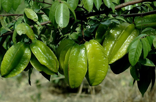 成熟的楊桃顏色是青綠色的,又帶有一點黃色,撫摸著的楊桃又光滑又冰涼,從正面看像一片片葉子,切開則像一個星星,再聞聞,一股清香沁入心田。
