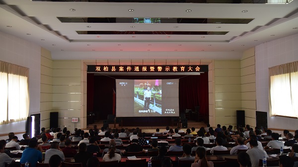 雙柏縣紀(jì)委監(jiān)委常態(tài)化開(kāi)展案情通報(bào)和警示教育大會(huì),對(duì)發(fā)生在該縣的嚴(yán)重違紀(jì)違法典型案件進(jìn)行通報(bào),讓全縣干部做到知敬畏,明底線。(劉余芳 攝)