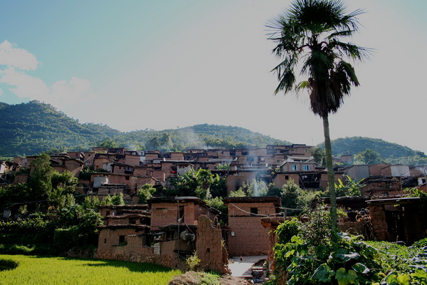 老舊的土掌房前為搖搖欲墜的簡(jiǎn)單照壁,這是大多數(shù)民族房屋的古老風(fēng)水建筑形式,具有求吉避兇的心理寄托。