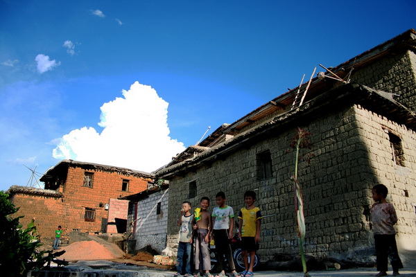 幾個(gè)男孩在村頭土掌房前童真地笑對(duì)鏡頭,也許這是能居住在土掌房又無(wú)憂無(wú)慮歡度童年的最后一代人了,土掌房正逐漸消逝在滾滾的歷史潮流中。