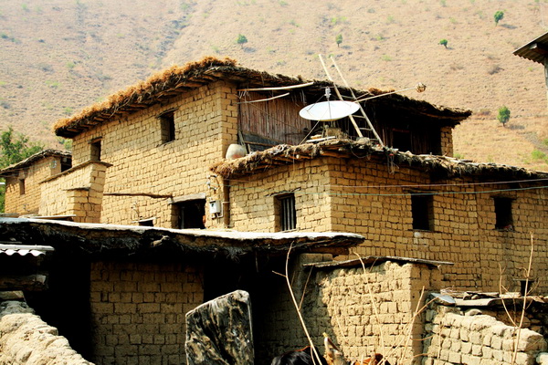 山腳下,這幾間土掌房經(jīng)歷了數(shù)十年風(fēng)風(fēng)雨雨猶顯破舊,但仍在使用,一架衛(wèi)星電視接收“鍋蓋”和一只電表箱、電線及瓦片是僅有的現(xiàn)代元素。