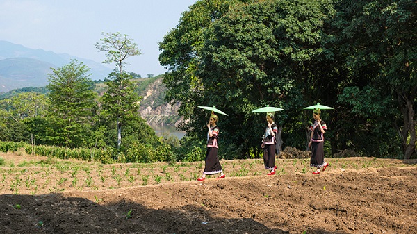 “土地平曠,屋舍儼然,有良田美池桑竹之屬。阡陌交通,雞犬相聞,怡然自樂。”地處紅河岸邊的阿邦村是一個傣族聚居村落,鑲嵌在青山綠水間的阿邦村如同陶淵明筆下的世外桃源。