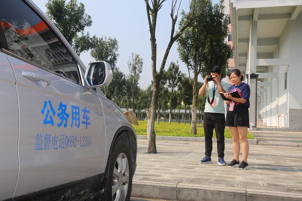 盈江縣紀委監委緊盯節點不放松,對公車使用情況進行檢查,堅決遏制“車輪上的腐敗”。(羅漪 攝)