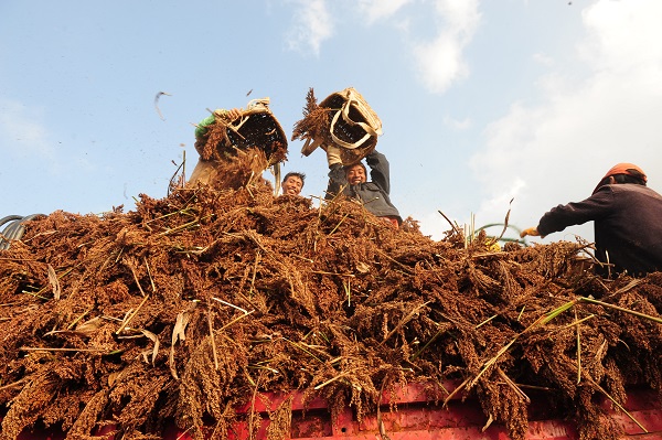 存糧如存金,有糧不擔心。看著裝得滿滿一車的高粱,莊稼人的喜悅似乎也要溢了出來。(毛虹 攝)