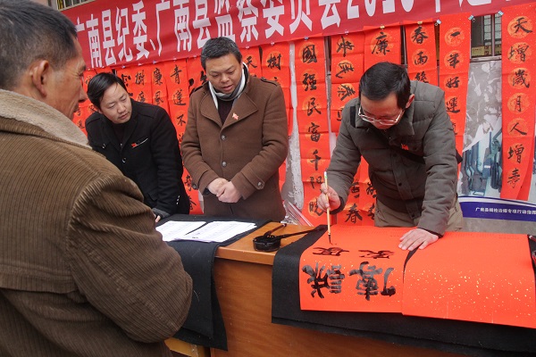 揮筆潑墨、妙筆生花、慷慨激昂,一幅幅當街對聯,一筆筆遒勁有力,都展示了紀檢監察干部積極進取的精神。(農玉國 攝)