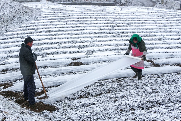 大雪到來大雪飄,兆示來年年景好。大雪節(jié)氣,鎮(zhèn)雄縣花山鄉(xiāng)的農(nóng)戶不畏嚴寒,忙著起壟鋪膜種植馬鈴薯,期盼來年有個好收成。(楊小軍 攝)