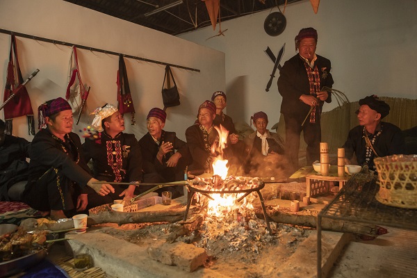 時逢冬至,萬象將新。景頗族同胞圍火塘而坐,驅(qū)寒取暖,暢談一年收獲,商議來年發(fā)展,水酒推杯換盞間,繪就美好生活畫卷。(邵元武 攝)