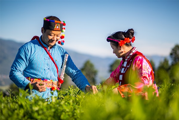 “今年的春茶長得好喲!能賣個好價錢啰!”融融春日,高黎貢山的茶園里的茶樹紛紛冒尖,茶農(nóng)開始采摘最鮮嫩的第一茬茶葉。(范南丹 攝)
