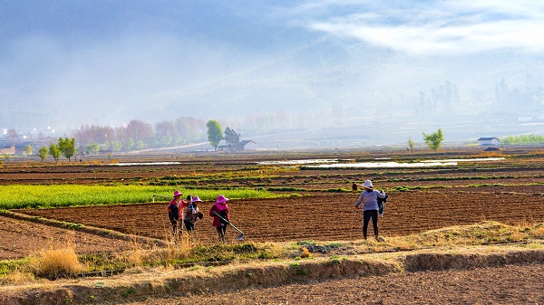 春分日正午,溫煦的陽光均勻地鋪滿石屏縣郊區(qū)的菜地,一旁的農(nóng)人不負(fù)好時節(jié),加班加點地為菜苗輸送養(yǎng)料和水份,讓它們在春風(fēng)的沐浴下茁壯成長。(田汝源 攝)